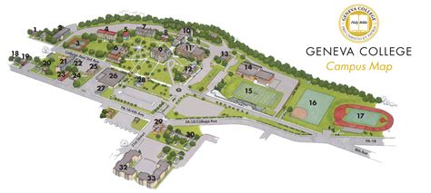 Geneva College Campus Map is surrounded by natural beauty and offers many opportunities for outdoor adventures. Visitors can explore the grounds and enjoy the fresh air and scenery.